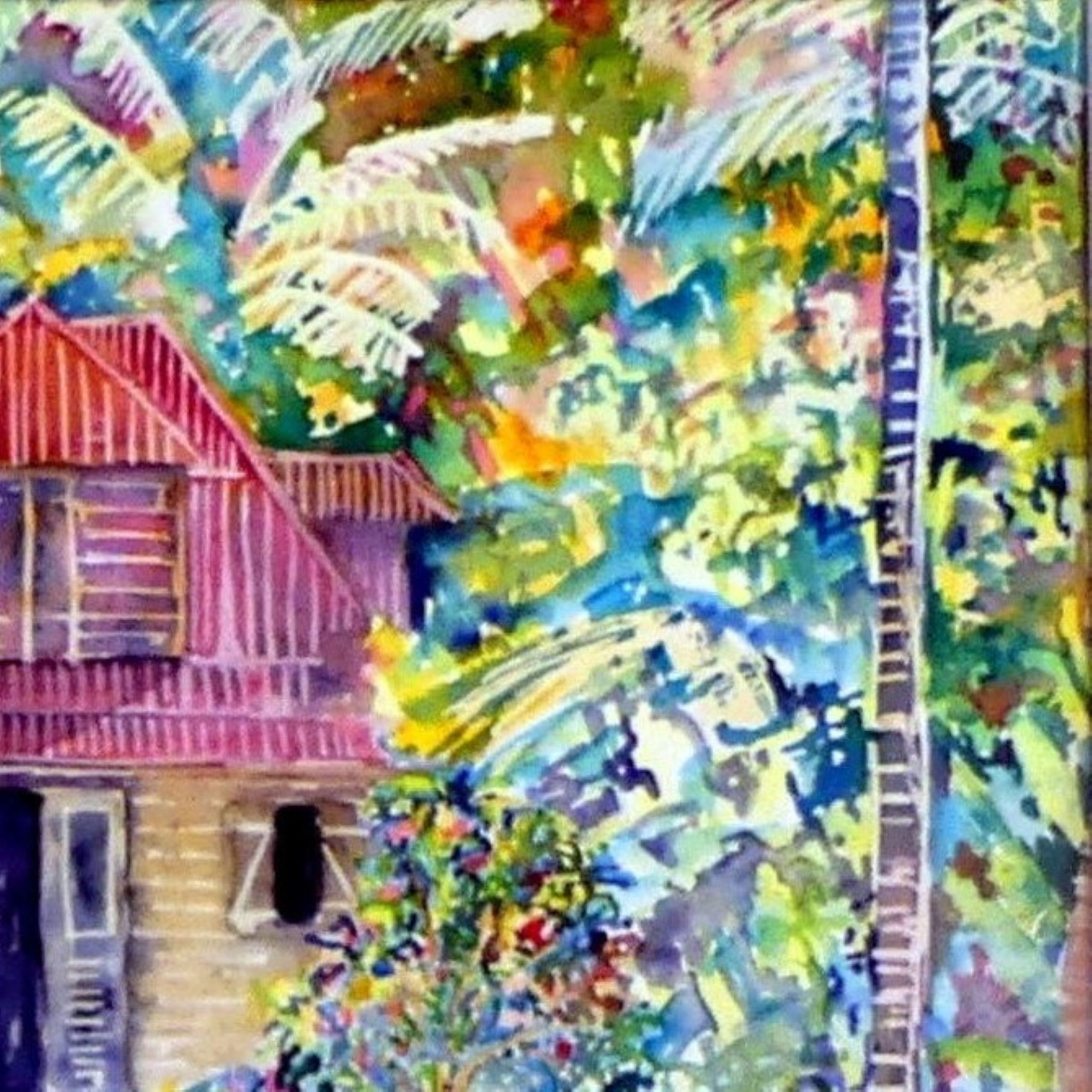 In this watercolour, I painted a traditional wooden house nestled on La Digue in Seychelles. I wanted to capture the warmth and quiet charm of island life—the deep red roof glowing against a tapestry of lush tropical foliage. The palms lean gently inward, framing the scene like guardians of this secluded retreat. The stone steps lead the eye toward the shaded veranda, inviting a sense of calm and nostalgia. Through vivid washes and layered color, I aimed to express both the vibrant energy of the landscape and the tranquil rhythm of island days.